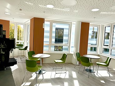 - Patientenlounge mit Tee- und Kaffeespezialitäten, Wasser und verschiedenen Snacks