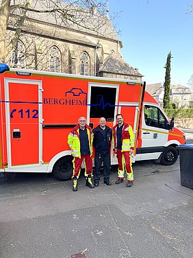Ebenfalls mit von der Partie war Thomas Bodewig, der unter anderem als Notfallsanitäter der Feuerwehr Bergheim tätig und für Brandschutzerziehung zuständig ist. Er brachte das vielleicht größte Highlight mit, nämlich einen Rettungswagen. Eine ausgiebige Erkundung des Innenraums inklusive medizinischem Inventar sollte den Kindern die Angst vor dem Einsatzfahrzeug nehmen.