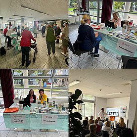Das Team der Orthopädie stand für Fragen und Terminvereinbarungen zur Verfügung. Pharmafirmen wie Braun und SmithNephew hatten Prothesenmodelle gesendet, die als Anschauungsmaterial für Interessierte dienten. Das Team der Anästhesie und der Neurochirurgie war zudem vertreten und beantwortete ebenfalls Fragen der Patienten. Das Sanitätshaus rahm war vor Ort und informierte über diverse Hilfsmittel und bot eine Fußdruckmessung an, anhand deren Ergebnisse sich Interessierte zu mögliche Einlagen beraten lassen konnten. Beim Entlassmangement konnten Fragen zu Anschlussbehandlungen und Reha-Maßnahmen gestellt werden und der Soziale Dienst gab Informationen zur Betreuung pflegebedürftiger Angehöriger weiter.