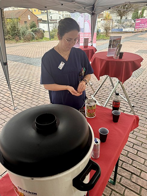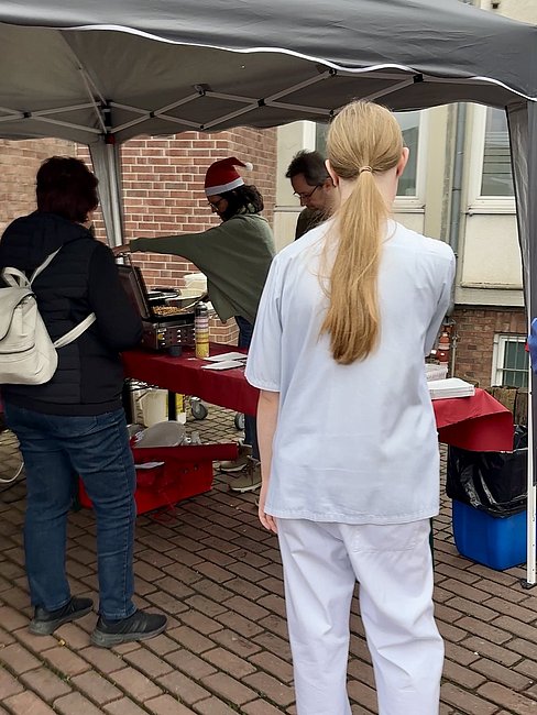 Für die Spendenaktion errichteten Mitarbeitende aus der Pflege, der Verwaltung und der Technik vor dem Haupteingang des Krankenhauses einen Waffelstand. Neben frisch gebackenen Waffeln wurden auch warmer Kakao und alkoholfreier Punsch angeboten. Jeder, der wollte, konnten die Leckereien gegen eine freiwillige Spende in selbstgewählter Höhe erwerben. Zahlreiche Mitarbeitende, Patientinnen und Patienten sowie deren Angehörige beteiligten sich an der Aktion. Insgesamt kam eine Spendensumme von 1.000 Euro zusammen.